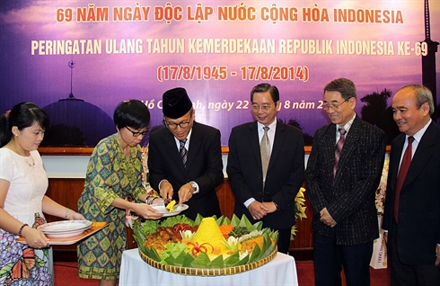 | Cérémorie de célébration du 69e anniversaire de la Journée de l'indépendance de l'Indonésie, le 22 août à Hô Chi Minh-Ville. |