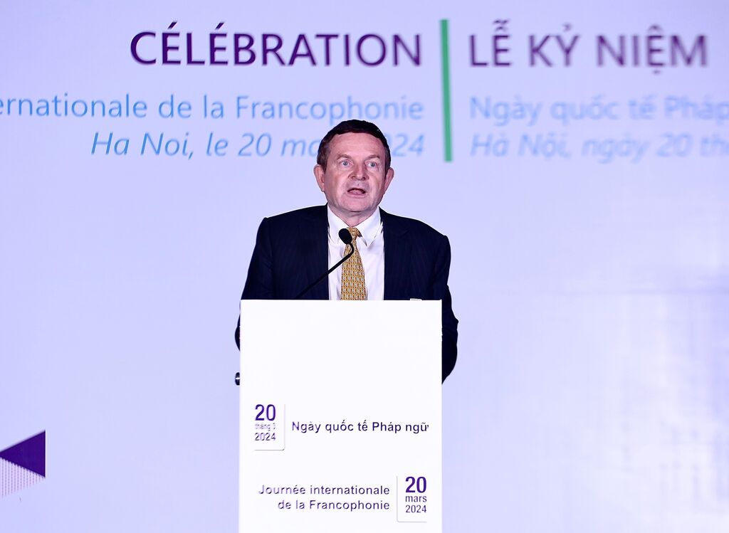 | Edgar Doerig, représentant régional Asie-Pacifique de l'OIF, lors de son discours à la cérémonie de célébration de la Journée internationale de la Francophonie, le 20 mars à Hanoï. |