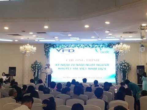 | Meeting organisé le 18 avril à Hanoï pour célébrer le 20e anniversaire de la Journée nationale des personnes handicapées du Vietnam (18 avril). |