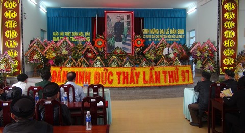 | Cérémonie de célébration du 97e anniversaire de la naissance du Vénérable Huynh Phu So, fondateur du bouddhisme Hòa Hao. |