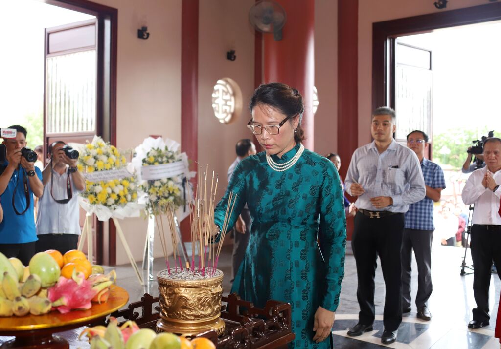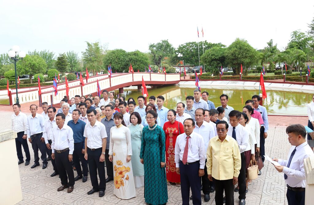 Dans une ambiance solennelle, les délégations de l'Ambassade du Vietnam au Laos, du Consulat général du Vietnam à Sanvannakhet, de l’administration provinciale de Khammouane... ont offert des gerbes de fleurs et de l'encens pour exprimer leur infinie gratitude et leur profond respect envers le Président Hô Chi Minh.