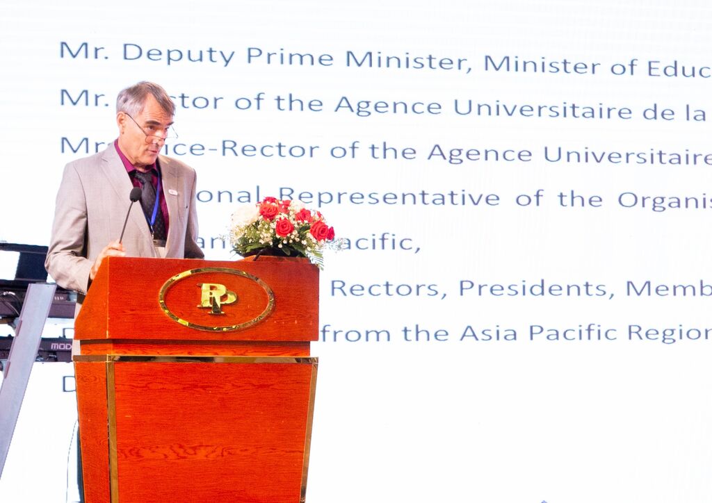| Professeur Laurent Sermet, directeur de l’AUF en Asie-Pacifique prend son discours lors de la cérémonie. |