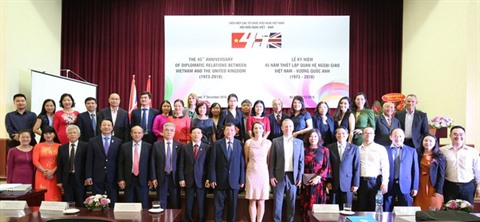 Présent à la célébration, l'ambassadeur britannique au Vietnam, Gareth Ward, a rappelé les activités en l’honneur des 45 ans de l'établissement des relations diplomatiques entre les deux pays, dont la visite du navire d'assaut amphibie HMS Albion de la Marine royale britannique à Hô Chi Minh-Ville, la fête britannique à Hanoï, et notamment la visite du prince Andrew, duc d'York, au Vietnam.