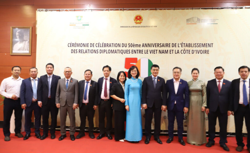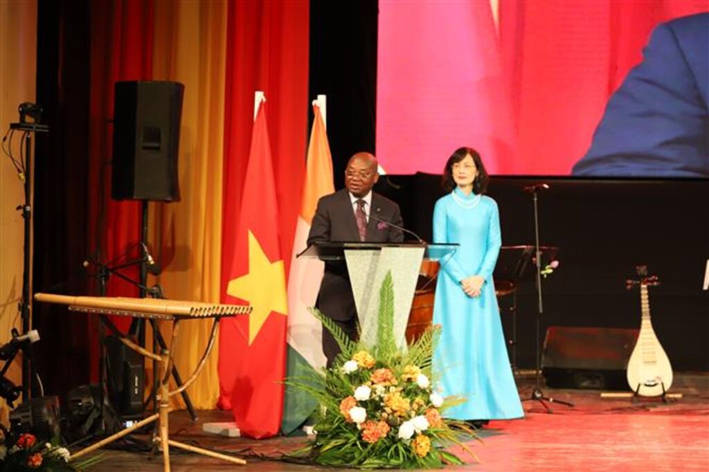 | Participants à la cérémonie de célébration du 50e anniversaire de l'établissement des relations diplomatiques entre le Vietnam et la Côte d'Ivoire. |