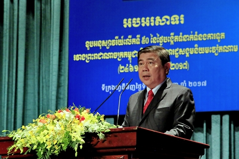 Dans son discours, le secrétaire adjoint du Comité du Parti et président du Comité populaire de Hô Chi Minh-Ville, Nguyên Thành Phong, a souligné que la coopération entre le Vietnam et le Cambodge avait abouti à des résultats positifs en tous domaines. Il a affirmé que Hô Chi Minh-Ville s’était efforcée de mettre en œuvre les préconisations des dirigeants des deux pays afin de contribuer à promouvoir les relations bilatérales par l'intermédiaire d'activités de coopération effectives avec les localités cambodgiennes, notamment la capitale de Phnom Penh.