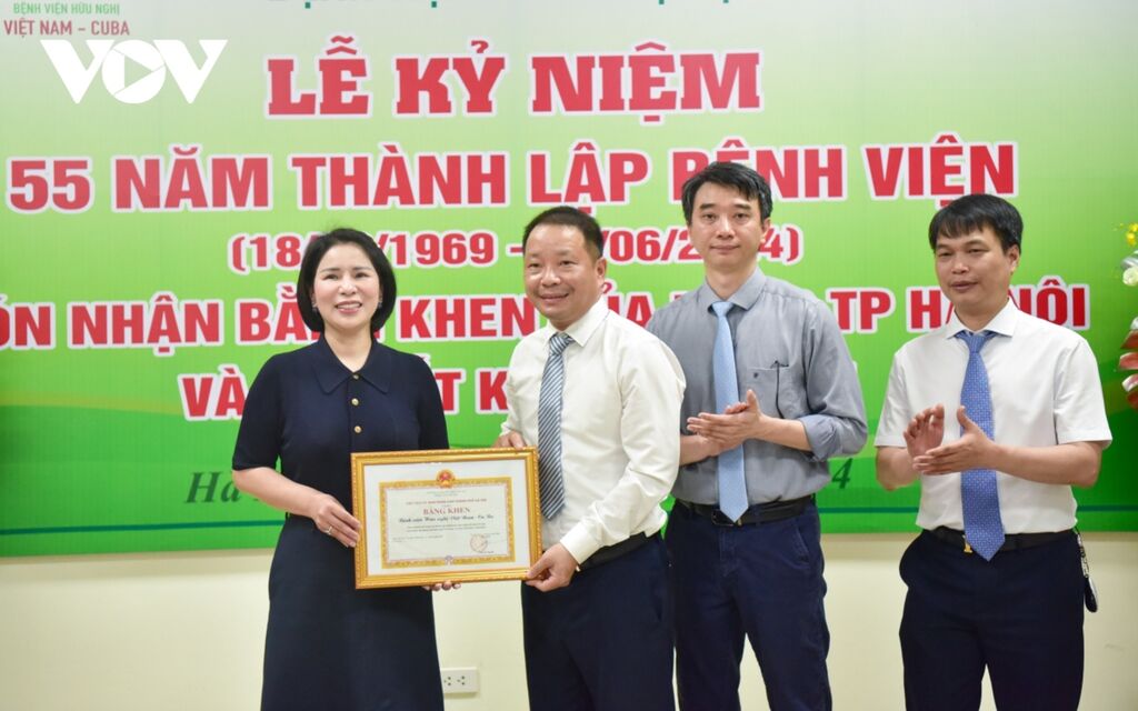 | La cérémonie marquant le 55e anniversaire de la fondation de l'Hôpital de l'amitié Vietnam - Cuba, le 17 juin à Hanoï. |
