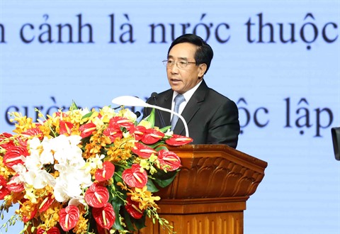 | Le vice-président lao Phankham Viphavanh lors de la cérémonie, le 18 juillet à Hanoï |