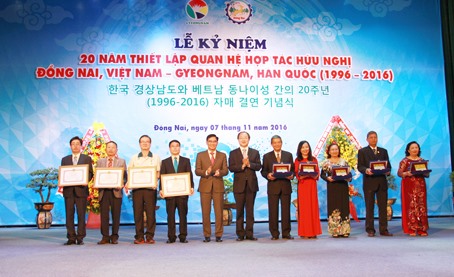 | Cérémonie célébrant le 20e anniversaire de l’établissement de ses relations avec la province sud-coréenne de Gyeongnam, le 7 novembre dans la province de Dông Nai (Sud). |