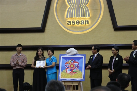 Par la même occasion, le secrétariat de l’ASEAN a émis officiellement un timbre et un cachet de poste utilisés par les pays membres. Ce timbre a été dessiné par Vu Kim Liên, qui a remporté le 1er prix du concours de création de timbre-poste organisé par l’ASEAN en février dernier.