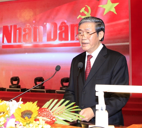 | Le permanent du secrétariat du PCV, Dinh Thê Huynh, prend sa parole au 65e anniversaire du Journal Nhân Dân, le 9 mars, à Hanoi. |