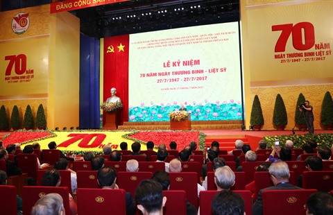 Lors de ces 70 années passées, notamment durant plus de 30 ans du Renouveau, le Parti et l’État ont bien dirigé le travail vis-à-vis des invalides de guerre, des héros morts pour la Patrie, en menant les mouvements de reconnaissance à leur égard. Le leader du Parti a affirmé que prendre soin des invalides de guerre, des familles des morts pour la Patrie et des personnes méritantes, en améliorant leur vie matérielle et spirituelle, est la préconisation constante du Parti et de l’État ainsi que la morale de la nation vietnamienne.