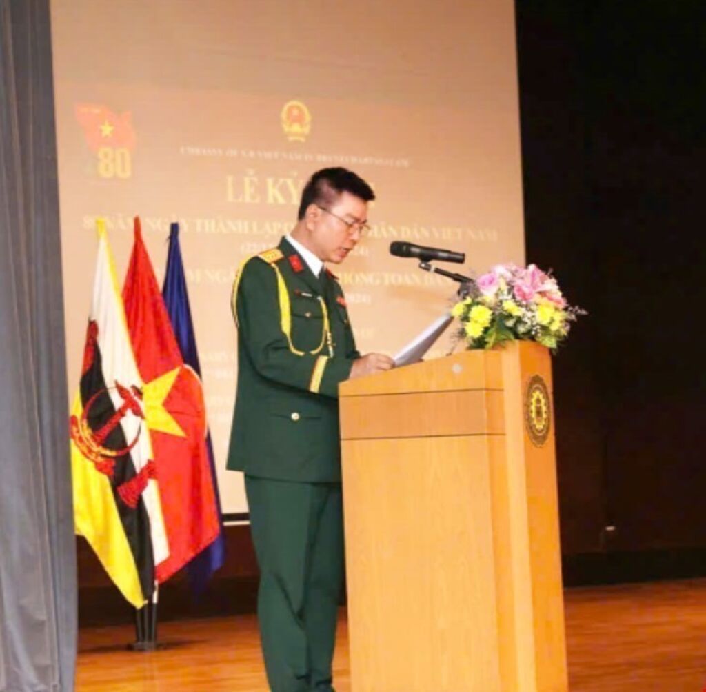 S’exprimant lors de la cérémonie, le sous-colonel Nguyên Ngoc Huân, attaché de défense du Vietnam au Brunei, a présenté aux invités l'histoire de la fondation de l'Armée populaire du Vietnam avec ses exploits et ses réalisations ainsi que les jalons de l'histoire de la lutte révolutionnaire du pays et du peuple.