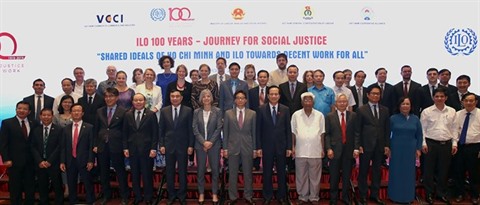 | Photo de famille des participants à la célébration du centenaire de la création de l'Organisation internationale du Travail (OIT), le 27 août à Hanoï. |