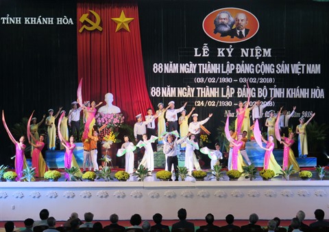 | Cérémonie de célébration du 88e anniversaire du Parti communiste du Vietnam, le 2 février à Khanh Hòa (Centre). |