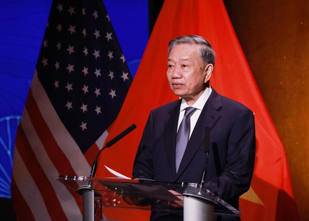 | Le secrétaire général et président Tô Lâm s'exprime lors de l'événement pour célébrer le premier anniversaire de l'élévation des relations Vietnam - États-Unis au rang de partenariat stratégique intégral pour la paix, la coopération et le développement durable et vers le 30e anniversaire de l'établissement des relations diplomatiques entre les deux pays. |