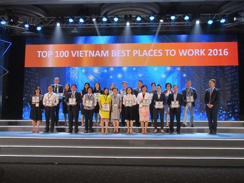 | Cérémonie de distinction des 100 meilleures entreprises où travailler au Vietnam de 2016, le 22 mars au centre White Palace, à Hô Chi Minh-Ville. |