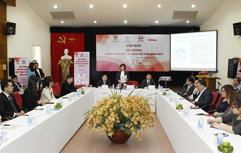 | Conférence de presse sur le lancement du Prix des jeunes exemplaires 2017, le 28 février à Hanoï. |