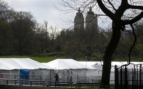 | Un hôpital de campagne à Central Park, le 16 avril à New York. |