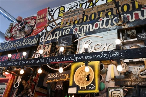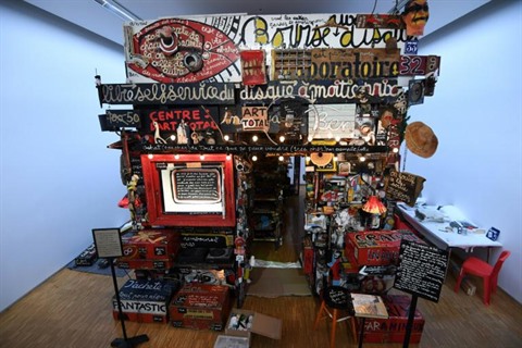 | Une partie de l'installation de l'artiste français Benjamin Vaultier connu sous le nom de Ben, "Le magasin de Ben", exposée au Centre Georges Pompidou, le 7 juin à Paris. |