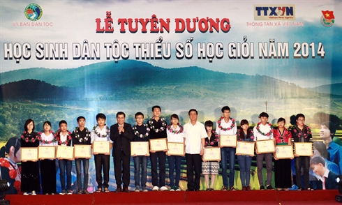 | La cérémonie à la gloire des brillants élèves issus d'ethnies minoritaires de 2014 a été organisée samedi matin 1er novembre à Hanoi. |