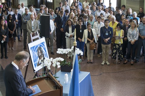 L'actuel secrétaire général de l'ONU a prononcé un discours en hommage au disparu et a signé un livre de condoléances lors de cette cérémonie où des couronnes de fleur ont également été déposées.