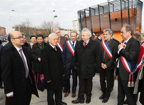 Après la cérémonie, le dirigeant vietnamien s’est rendu à Choisy-le-Roi dans le Département du Val-de-Marne de la région administrative de l'Île-de-France pour visiter la place des Accords de Paris et rencontrer des amis français du Vietnam.