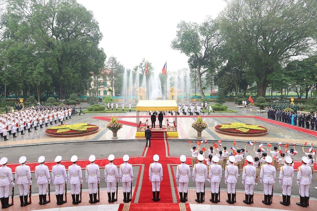 | La cérémonie d’accueil en l’honneur du Premier ministre tchèque Petr Fiala. |