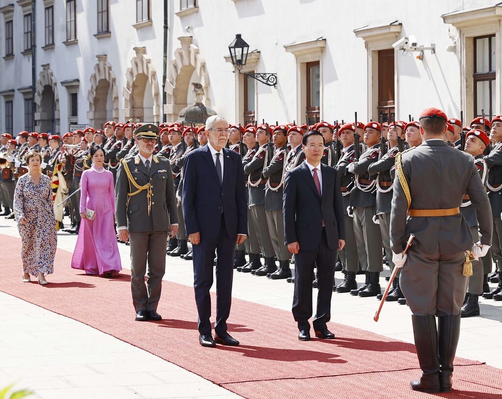 | Cérémonie d'accueil officielle du président Vo Van Thuong et de son épouse en visite officielle en Autriche. |