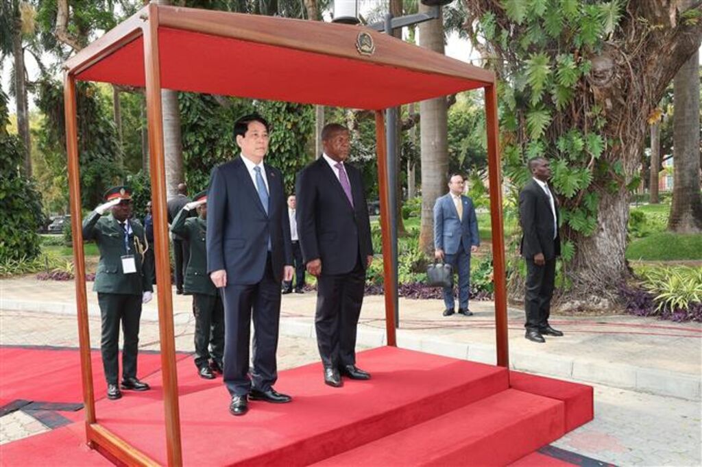 | Cérémonie d’accueil officielle du président Luong Cuong (droite) en visite d’État en Angola. |