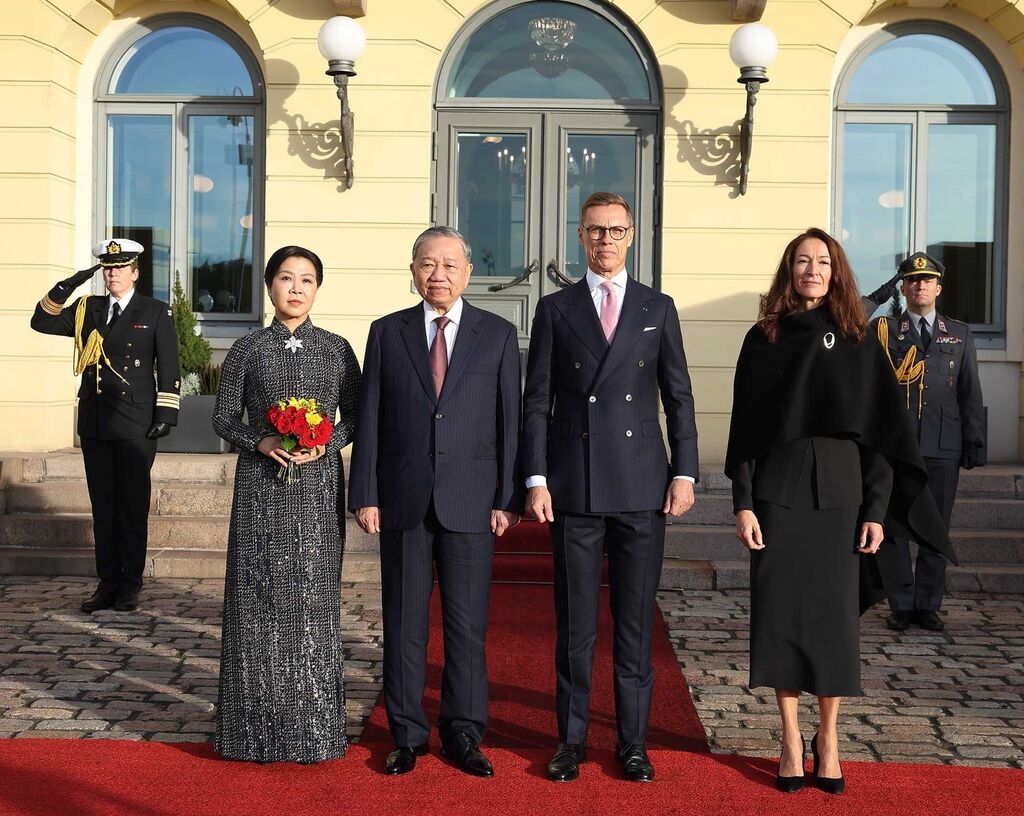 | Cérémonie d’accueil officielle au Palais présidentiel de Finlande pour le secrétaire général du Parti communiste du Vietnam (PCV), Tô Lâm, et son épouse Ngô Phuong Ly. |