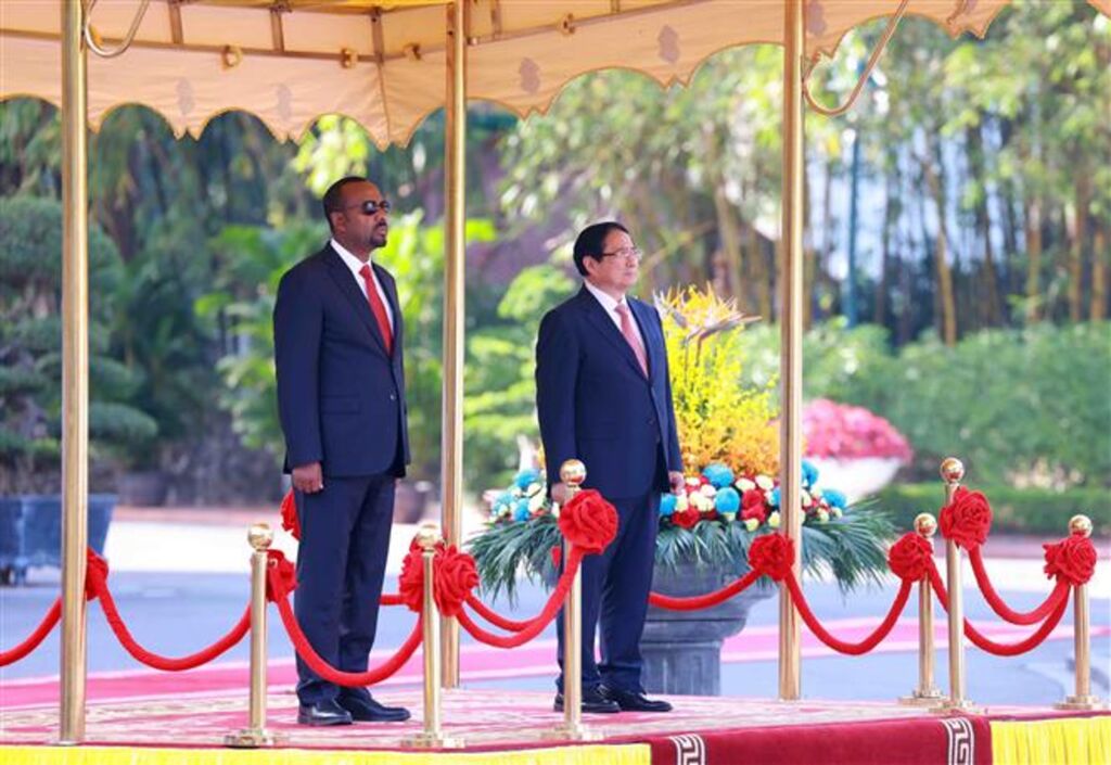 Après la cérémonie d'accueil, les Premiers ministres ont visité une exposition de photos sur les deux pays, leurs peuples et les bonnes relations entre le Vietnam et l'Éthiopie, organisée conjointement par le Bureau du gouvernement et l'Agence vietnamienne d’Information. Les deux dirigeants se sont ensuite entretenus.