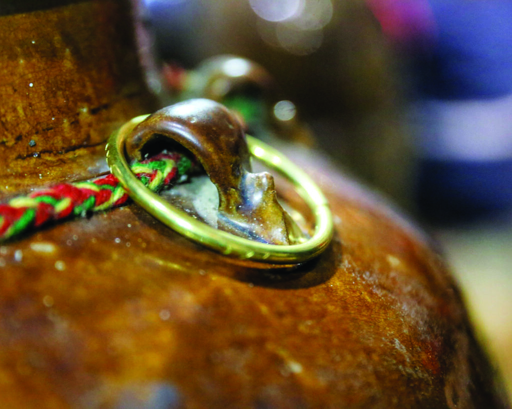 | Décoration de la jarre avec des bagues. |