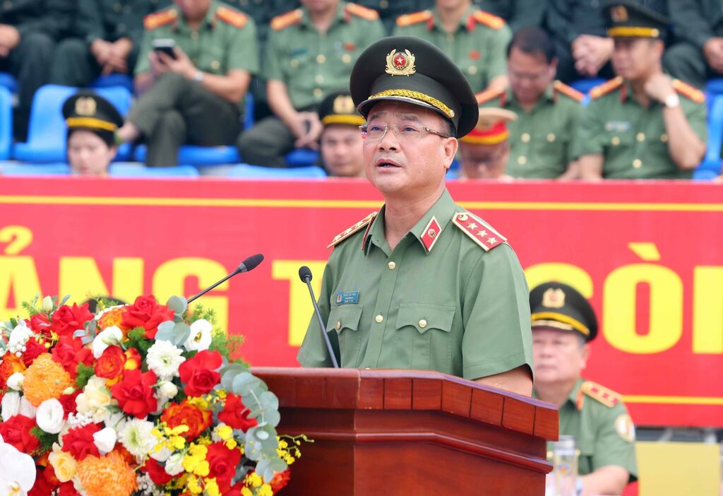 | Le vice-ministre de la Police, Pham Thê Tùng, à la cérémonie de départ des forces de police pour garantir la sécurité absolue de la 80e Fête nationale. |