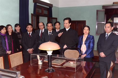 | Le Premier ministre Nguyên Tân Dung (3e à droite) visite le secteur des vestiges du Président Hô Chi Minh au palais présidentiel , le 17 janvier |