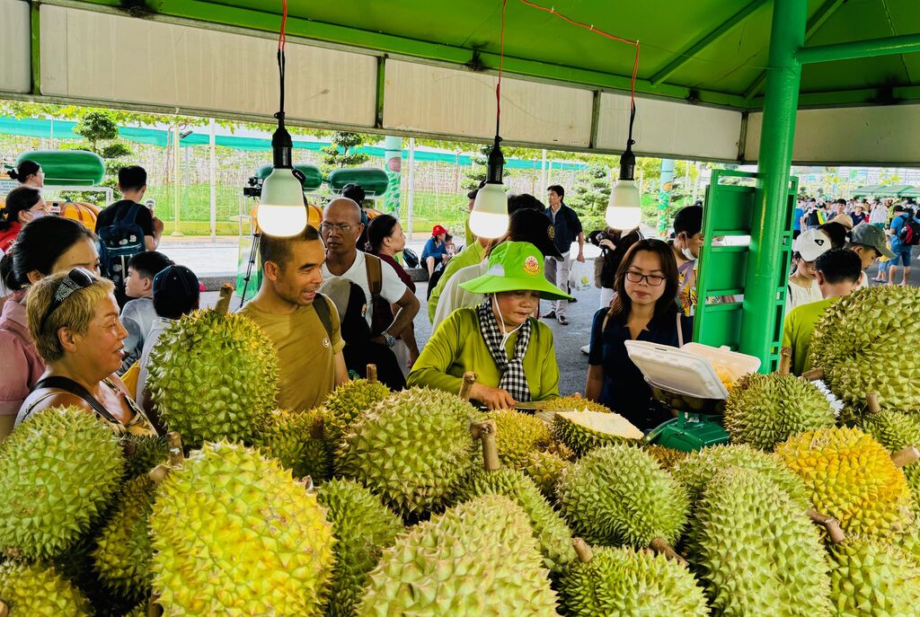 | Les visiteurs achètent des fruits spéciaux lors du Festival des fruits du Sud 2025. |