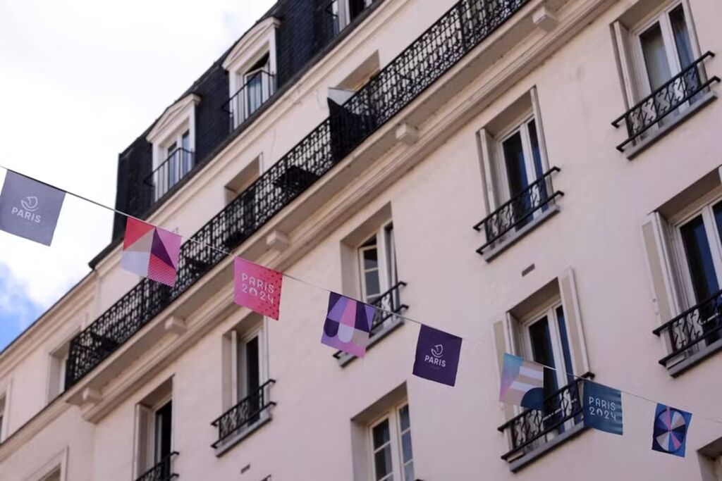 | Une rue de Paris aux couleurs des Paralympiques. |