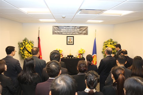 | La cérémonie funéraire en mémoire de l’ancien secrétaire général Dô Muoi et ouvert un registre de condoléances, le 4 octobre à New York. |