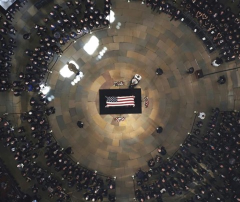 | Le cercueil de John McCain au centre de la rotonde du Capitole, le 31 août à Washington. |