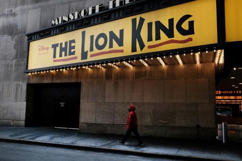 | Un des grands théâtres de Broadway, le Minskoff Theater, affiche fermé, le 22 décembre 2020. |