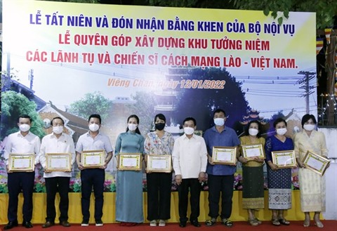 | Remise des certificats de mérite aux individus et aux collectifs vietnamiens ayant contribué au travail de secours et d'assistance au peuple laotien, le 12 janvier à Vientiane. |
