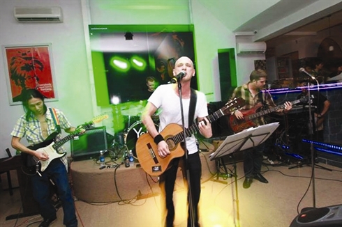 | Le groupe nippo-américain Lost Art lors d’une interprétation des chansons vietnamiennes au café Yoko à Hô Chi Minh-Ville. |