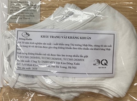 | Des masques antibactériens de la SARL unipersonnelle de tricotage Dông Xuân (Dêt Kim Dông Xuân). |