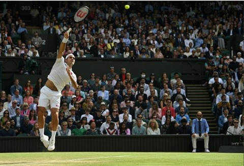 | Le Suisse Roger Federer, lors du quart de finale de Wimbledon contre le Polonais Hubert Hurkacz, le 7 juillet à Londres. |