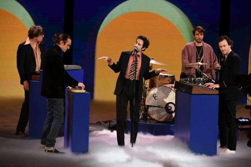 | Le groupe de rock français Feu! Chatterton en concert aux 37e Victoires de la musique à la Seine musicale, le 11 février 2022 à Boulogne-Billancourt, près de Paris. |