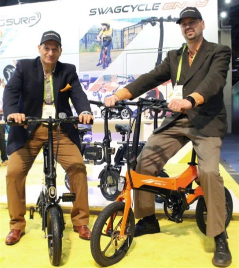 | Des modèles de vélos électriques présentés au CES de Las Vegas. |