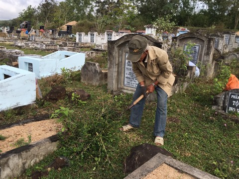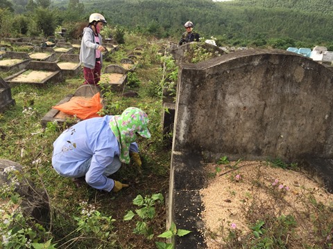 | Le nettoyage de la tombe, une des traditions vietnamiennes avant le Têt. |