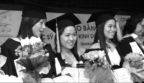 | De futurs jeunes hauts gestionnaires du Vietnam diplômés du CFVG. |