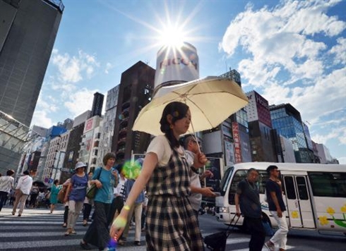 | Des piétons utilisent des parapluies pour se protéger du soleil, le 11 juillet à Tokyo. |