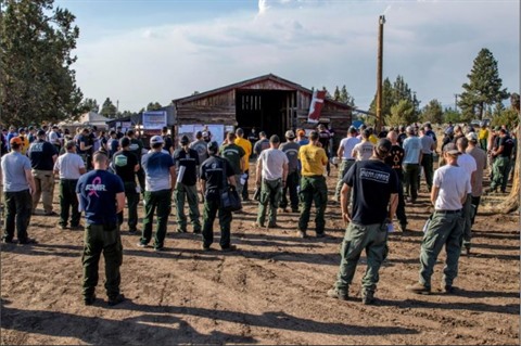 | Des pompiers chargés de combattre le Bootleg Fire, dans l'Oregon, le 15 juillet. |