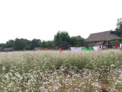 Autrefois, pour contempler ces fleurs de sarrasin qui poussent sur les pentes des montagnes karstiques, les visiteurs devaient se rendre jusqu’aux provinces montagneuses du Nord, à Hà Giang, Son La ou Lai Châu. Aujourd’hui, il leur suffit d’aller au Village culturel et touristique des ethnies du Vietnam, à 40 km du centre de Hanoï. "D’abord, je suis très étonnée de voir un champs de fleurs de sarrasin en banlieue de Hanoï. C’est la première fois que j’admire ces fleurs typiques des provinces montagneuses, elles sont très belles", a souligné Bùi Thi Vân Trang, étudiante à l’Université d'hydraulique de Hanoï.